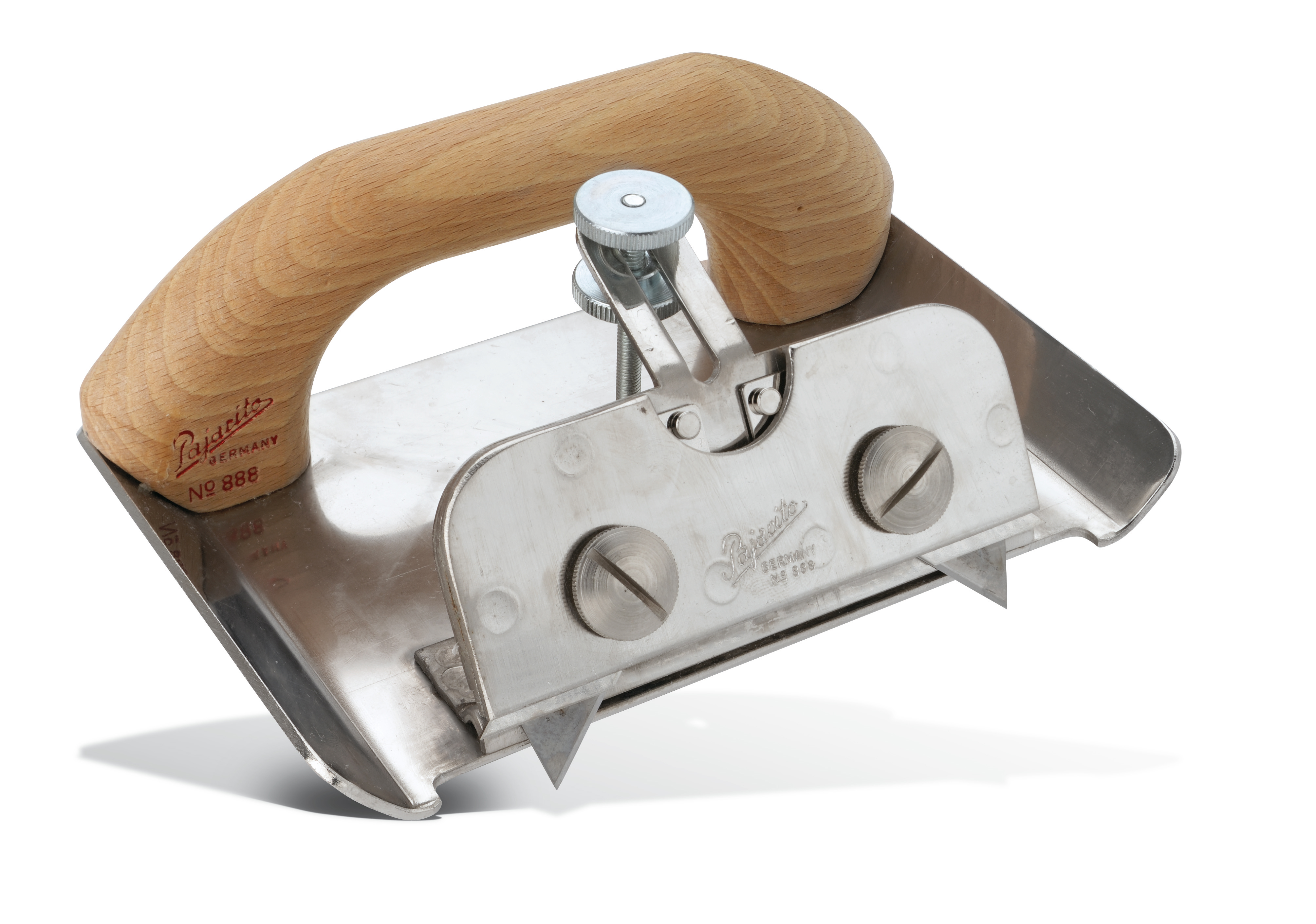 Aus Stahl, mit Holzheft und auswechselbarer Klinge Art.-Nr. 660E sowie verstellbarer Führungsnase. Inbusschlüssel im Heft.